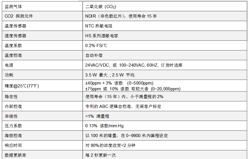 四、CO2監(jiān)測控制器F2000IAQ-CO2-30/50系列技術(shù)規(guī)格: