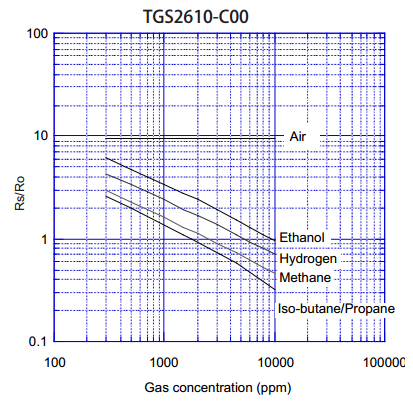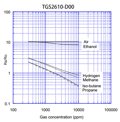 四、可燃?xì)怏w傳感器/液化石油氣傳感器TGS2610靈敏度特性: