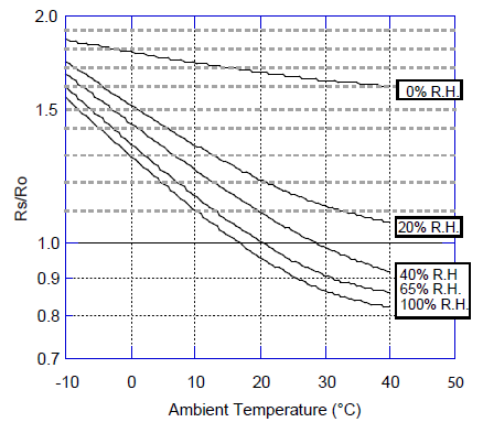 Ro = 傳感器在含有1000ppm甲烷氣體, 溫濕度為20°C ,65% R.H.時(shí)的電阻值
