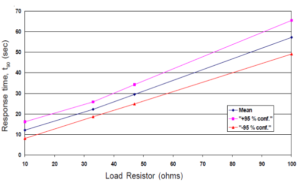 正如所有 Alphasense 的毒氣傳感器一樣,增加負載電阻值會延長反應(yīng)時間,但也能降低噪聲以獲得更好的分辨率 。