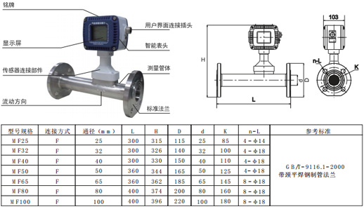 四、MF系列管道式質(zhì)量流量計(jì)技術(shù)參數(shù):