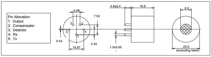 四、Prime3紅外二氧化碳傳感器外觀描述: