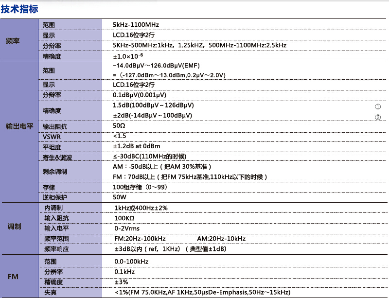 三、射頻信號發(fā)生器AT8010D技術(shù)指標(biāo)