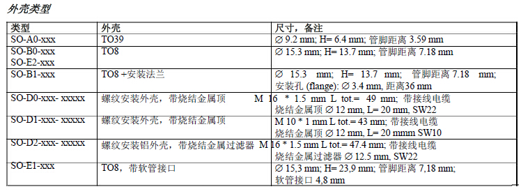 五、SO-E3-250極限電流型氧化鋯氧氣傳感器規(guī)格: