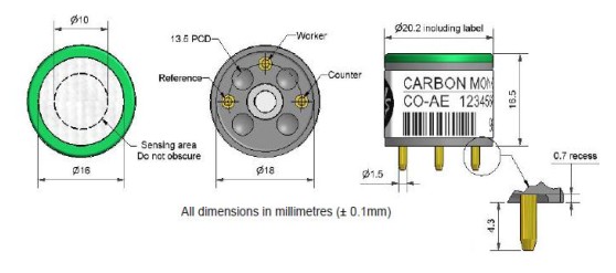 英國(guó)alphasense 一氧化碳傳感器 (小型,帶過(guò)濾膜,大量程,CO傳感器) - CO-AE