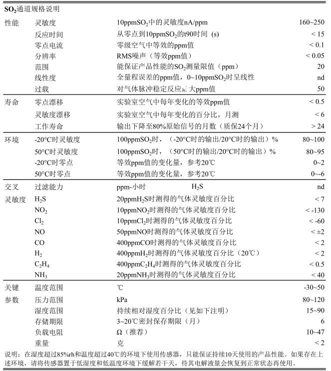 二、SOH-A2 型傳感器的二氧化硫通道的技術(shù)指標(biāo):