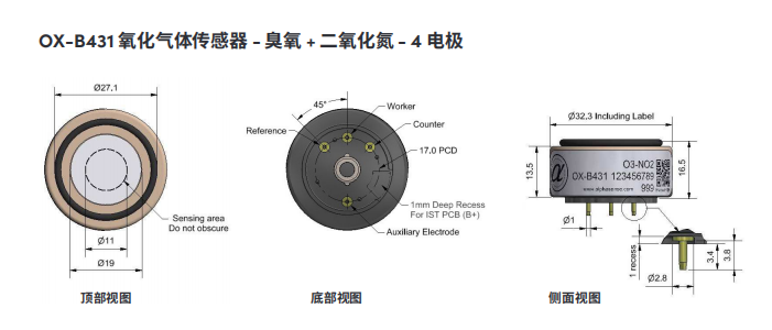 一、英國(guó)Alphasense 高分辨率臭氧傳感器(O3傳感器) OX-B431 OX-B431+ 描述