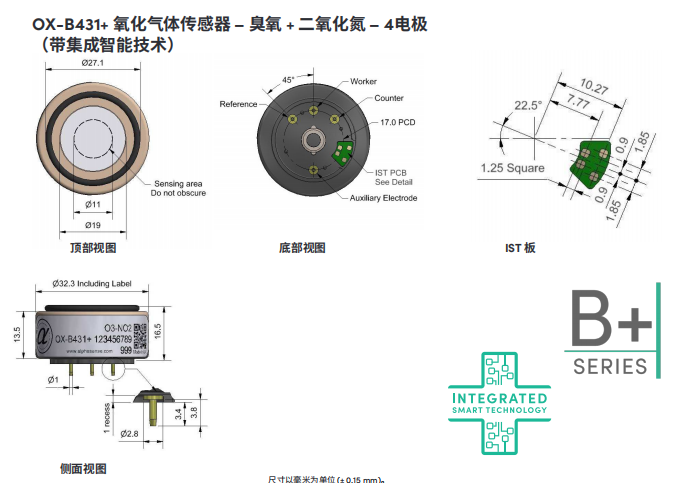 英國(guó)Alphasense 高分辨率臭氧傳感器(O3傳感器) OX-B431 OX-B431+ IST板數(shù)據(jù):