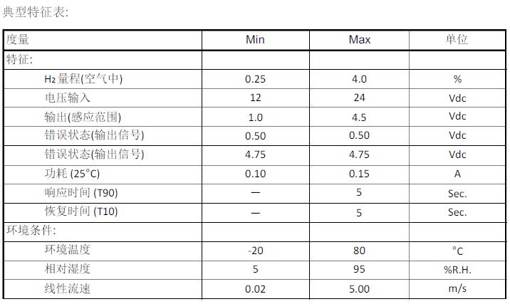 四、SenseH2-R?氫氣傳感器典型特征表