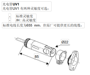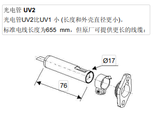 光電管UV2比UV1 小 (長(zhǎng)度和外殼直徑更小)。
