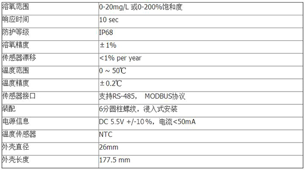 三、熒光法溶解氧傳感器RDO-200產(chǎn)品參數(shù)