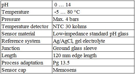 pH傳感器SE 515技術(shù)參數(shù)