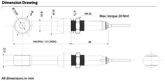 Material  Cell: PFA ; Gasket: FFKM (Chemraz)
