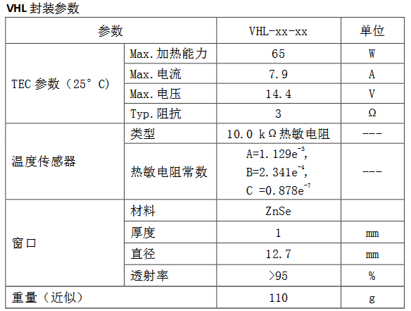 三、(量子級(jí)聯(lián)激光器)CO氣體傳感器 VHL-13-47VHL 封裝參數(shù)