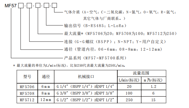六、美國Siargo MF5700系列便攜式氣體質(zhì)量流量計(jì) 選型: