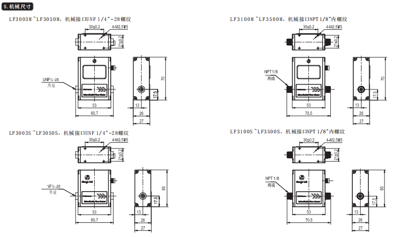 美國(guó)Siargo 微液體流量計(jì) LF3000系列 尺寸: