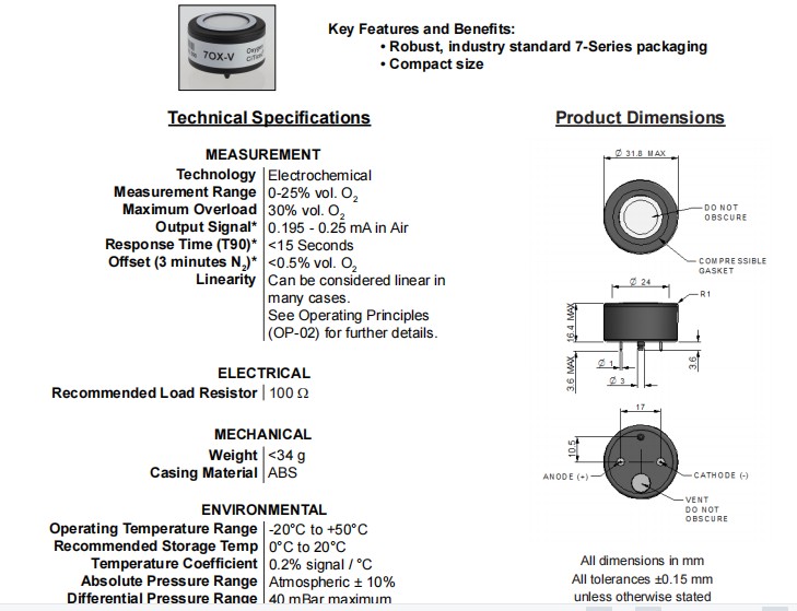 英國CITY 氧氣傳感器 O2傳感器 7OXV特點: