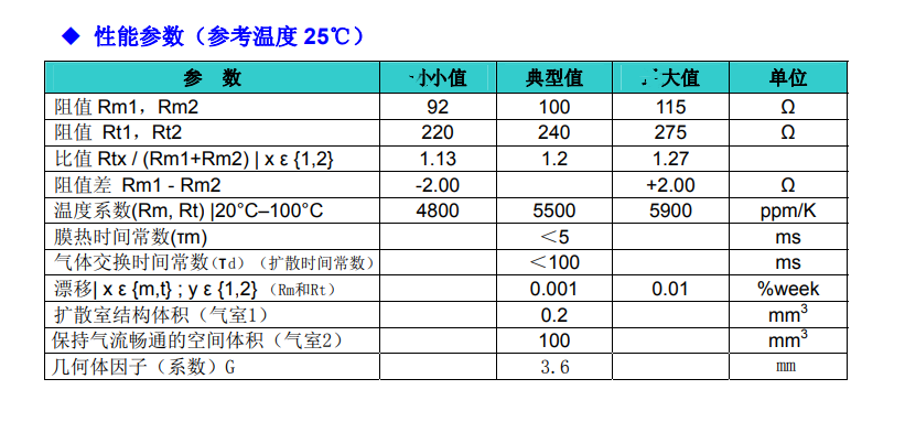熱導式氣體傳感器 TCS208F 參數(shù):