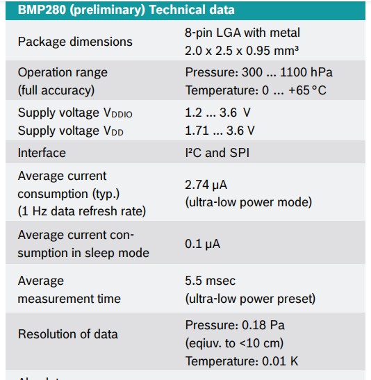 BOSH 壓力傳感器 BMP280 參數(shù):