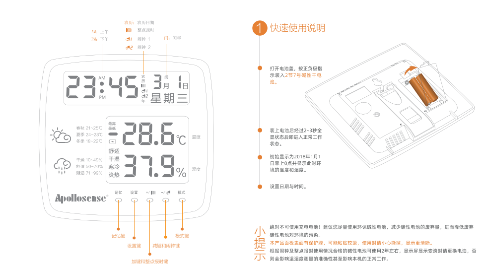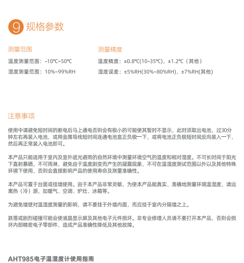 AHT985是一款用于室內(nèi)的溫濕度計,裝有精密的物理感應(yīng)部件,能準(zhǔn)確測量附近的溫濕度,提醒我們調(diào)整合適的環(huán)境溫濕度,保護(hù)財產(chǎn)安全,保障身體健康等