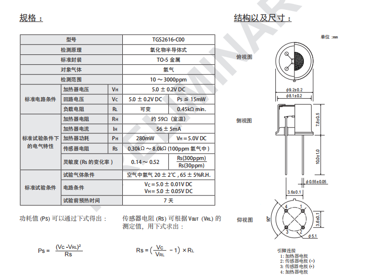 日本Figaro 氫氣傳感器 氣體傳感器TGS2616-C00 參數(shù):