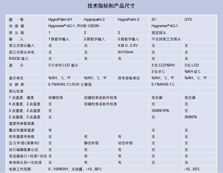 瑞士羅卓尼克Rotronic 溫濕度手持表 HygroPalm 1 參數(shù):