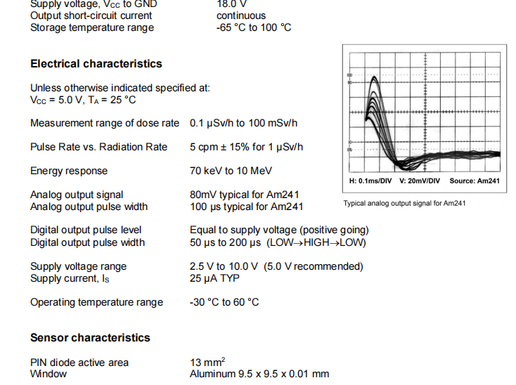 瑞士Teviso 輻射傳感器 檢測α β粒子 γ射線 AL54 描述: