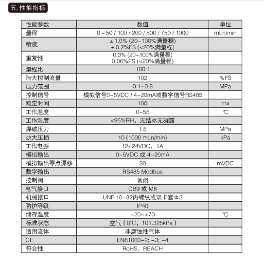 美國Siargo 氣體質量流量控制器 小體積 高性能 MFC4000系列 參數(shù):