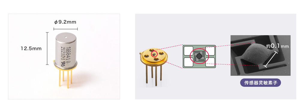 通過(guò)融合日本Figaro超過(guò)50年的半導(dǎo)體式氣體傳感器技術(shù)積累與高超的MEMS(Micro Electro Mechanical Systems)技術(shù),外形尺寸降至直徑9.2mm、高度12.5mm*,與日本Figaro既有的甲烷傳感器相比,功耗成功降低了90%以上。