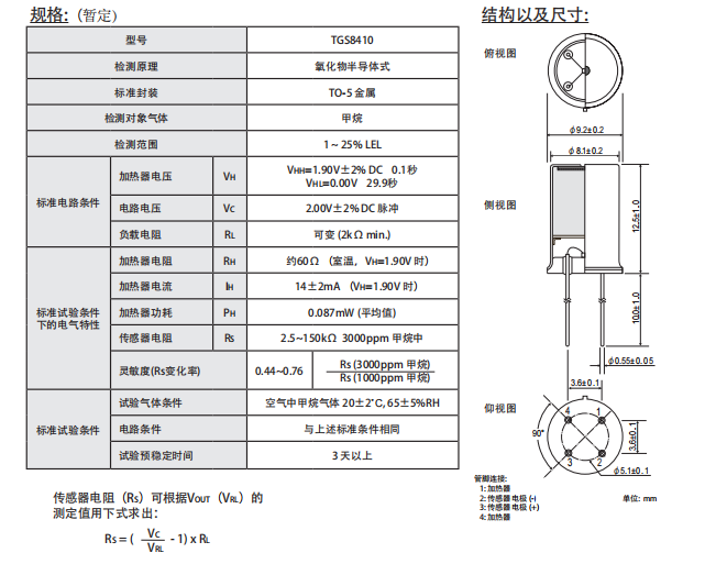 五、日本Figaro 甲烷氣體傳感器 MEMS 低功耗 高靈敏度 TGS8410 參數(shù):