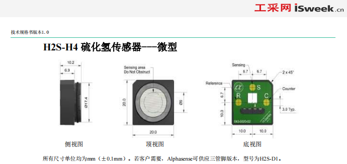 英國Alphasense H2S 硫化氫傳感器 電化學 微型 H2S-H4 參數(shù):