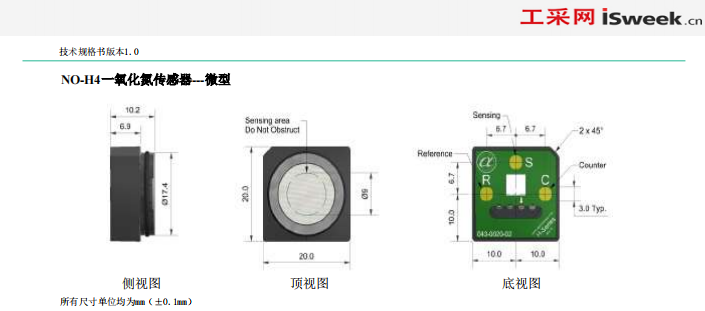 英國(guó)Alphasense NO 一氧化氮傳感器 電化學(xué) 微型 NO-H4 參數(shù):