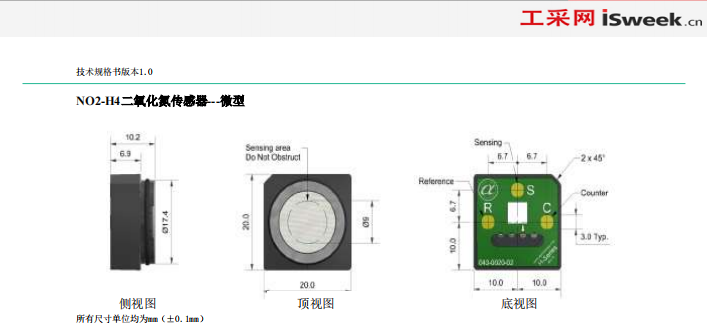 英國Alphasense NO2 二氧化氮傳感器 電化學 微型 NO2-H4 參數(shù):