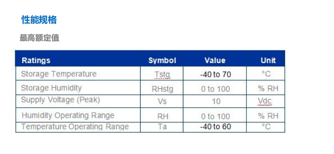 4、 5Vdc 電源下 0 至 100%RH 的典型 1 至 3.6 V直流輸出