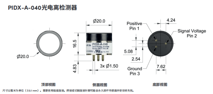 英國(guó)Alphasense VOC 光電離子傳感器 高級(jí)PID傳感器 – PIDX-A-040 尺寸: