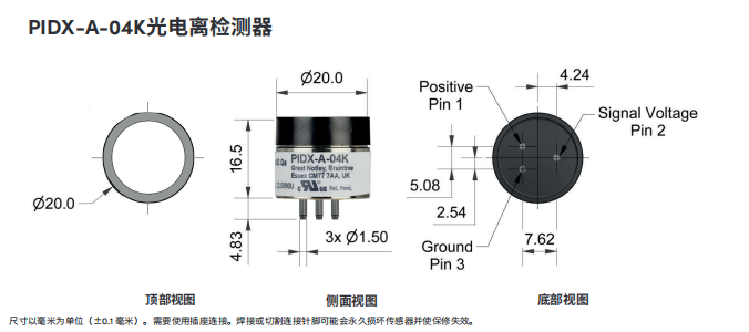 英國Alphasense VOC 光電離子傳感器 高級PID傳感器 – PIDX-A-04K 尺寸: