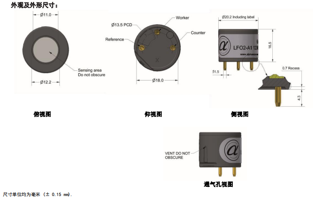 英國Alphasense O2 長壽命無鉛氧氣傳感器 LFO2-A1描述: