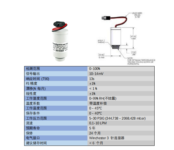 美國(guó)AII O2 氧氣傳感器 PSR-11-75-KE8 參數(shù):