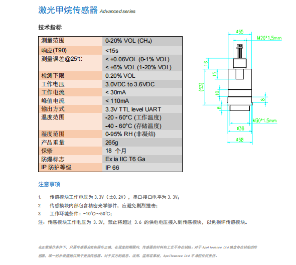 激光甲烷傳感器?AG-6-CH4-2822-B 參數(shù):