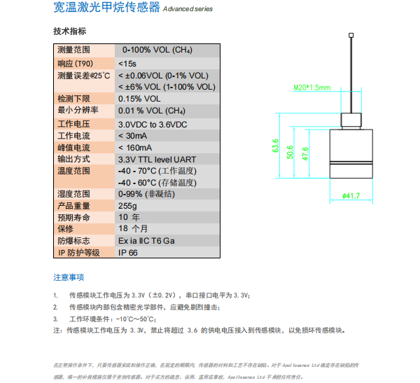 AG-6-CH4-2842-100甲烷傳感器采用自研激光器和光電探測(cè)器核心器件,結(jié)合穩(wěn)定的控溫算法、濃度反演算法和溫度補(bǔ)償算法實(shí)現(xiàn)甲烷濃度的精確測(cè)量;產(chǎn)品基于可調(diào)諧激光氣體吸收