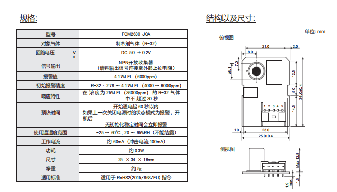 日本Figaro 用于制冷劑氣體R-32 的預(yù)校準(zhǔn)模塊 FCM2630-J0A 參數(shù):