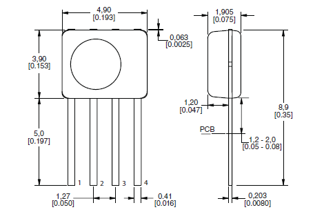四、HIH6000系列數(shù)字式濕度/溫度傳感器機械圖