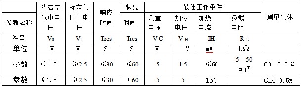 三、一氧化碳可燃?xì)怏w傳感器MQ-K9規(guī)格型號(hào):