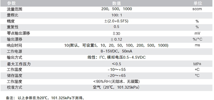 四、FS5001L氣體流量傳感器技術(shù)參數(shù)