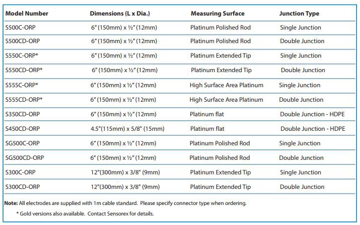 實(shí)驗(yàn)室ORP電極 (水質(zhì)傳感器)訂購信息:
